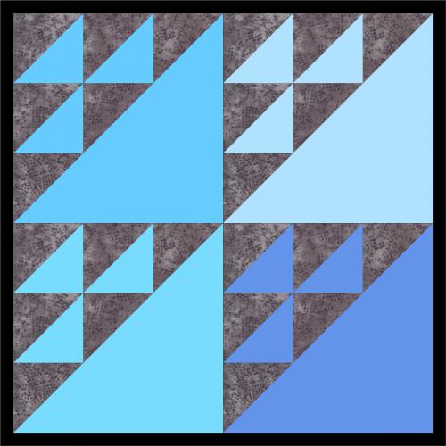 The quilt block, “Birds in the Air”, is most appropriate with the 4 different colours of blue for the sky at seasonal migrations.